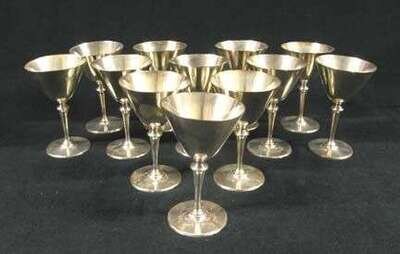 Set of twelve Tiffany & Co. sterling silver martini glasses circa 1922
