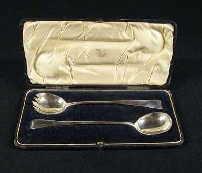 Assembled cased set of George III sterling silver salad servers london 1798 & 1801