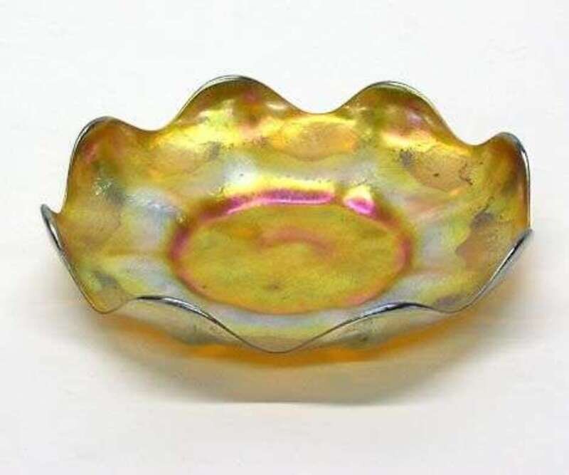 Tiffany gold Favrile glass scalloped edge dish