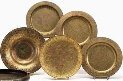 Diam. of plates: two at 7 3/4 in., one at 7 1/2 in.; Diam. of bowls: 8 and 9 in.
