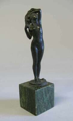 Bronze, dark green patina, signed Beach with B. Zoppo NY foundry mark, raised on a green marble base inscribed to underside, "Chester Beach NY Nov 1918."