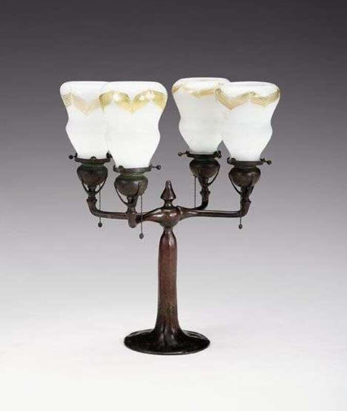 Tiffany Studios favrile glass and bronze four-arm candelabra early 20th century