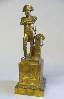 Modeled as Napoleon standing a plinth inscribed 'VIVRE EN HEROS / ET MOURIR EN GRAND HOMMES / 5 MAI 1821'. H: 14 1/4 in.