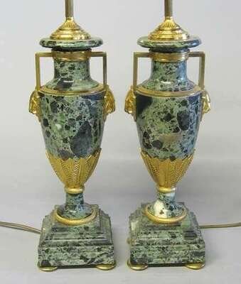 Pair of Empire style green marble and gilt metal mounted urns 20th century