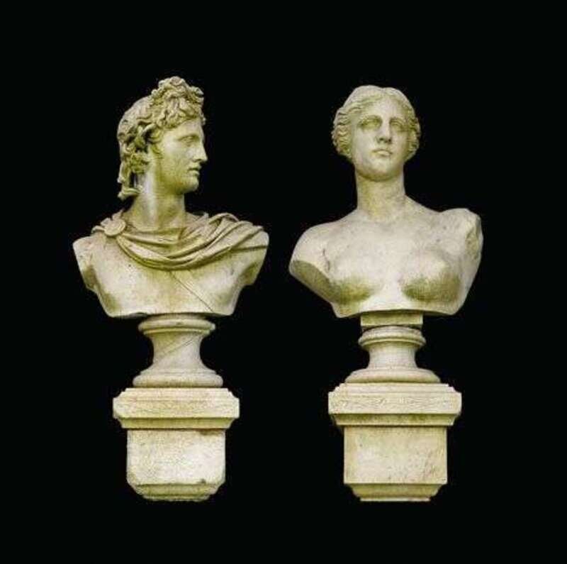 Marble busts, H: 43, obelisks H: 371/2 in.