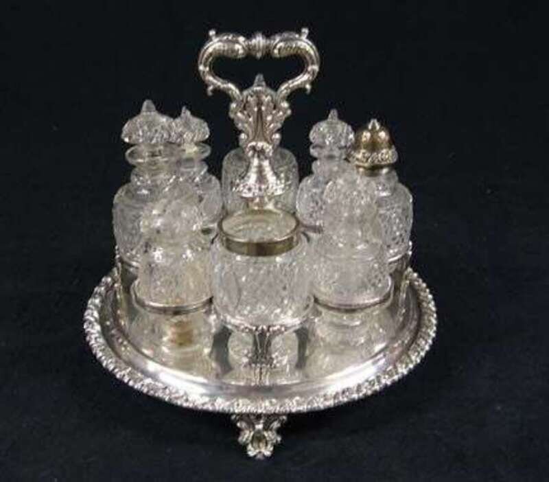 Victorian silver plated and cut glass cruet set late 19th