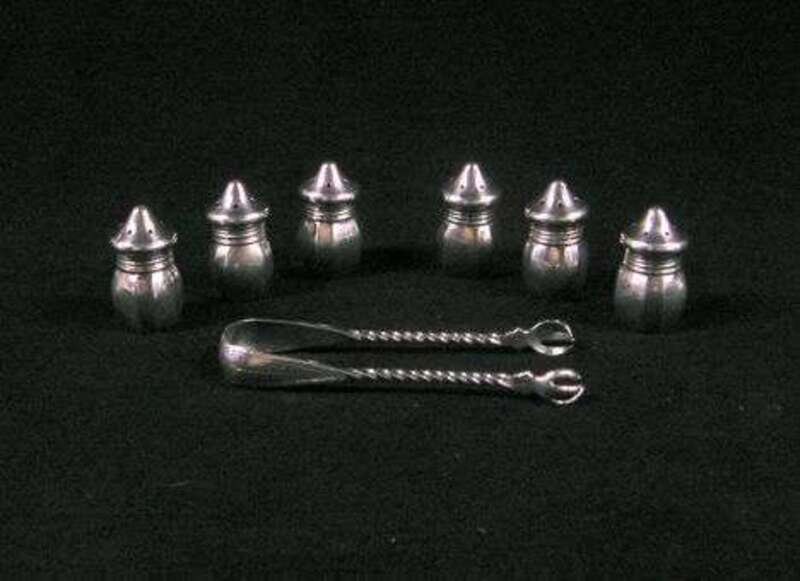 With rope twist handles, together with six sterling pepper shakers.