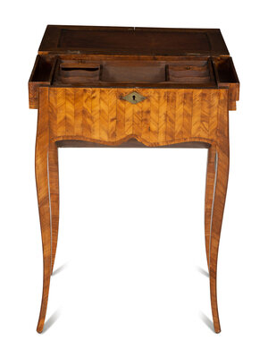 A Louis XV Tulipwood Parquetry Bureau Capucin
