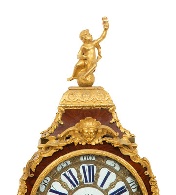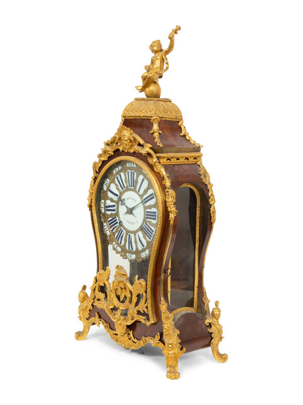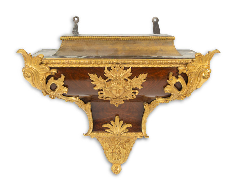 A Louis XV Gilt Bronze Mounted Kingwood Bracket Clock and Matching Wall Bracket