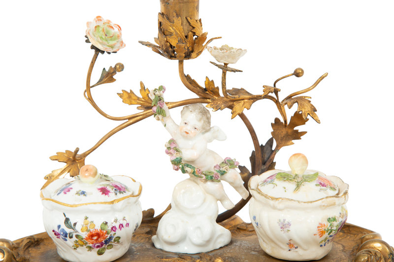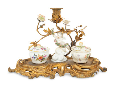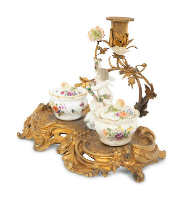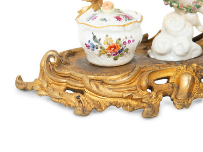 A Louis XV Style Porcelain and Gilt Bronze Standish