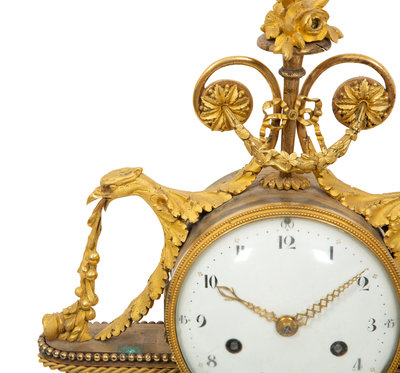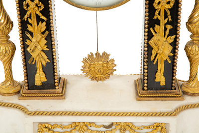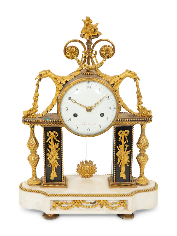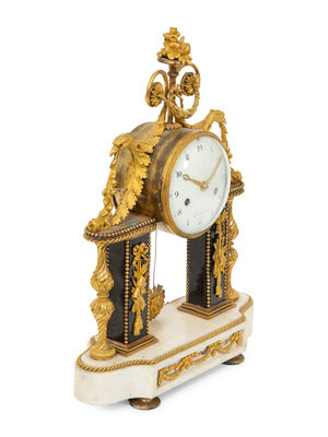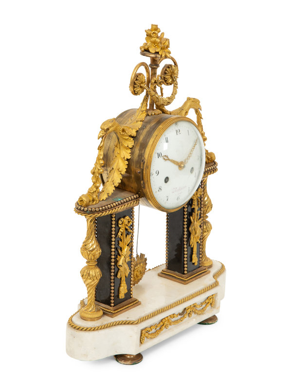 A Louis XVI Gilt Bronze and Marble Mantel Clock