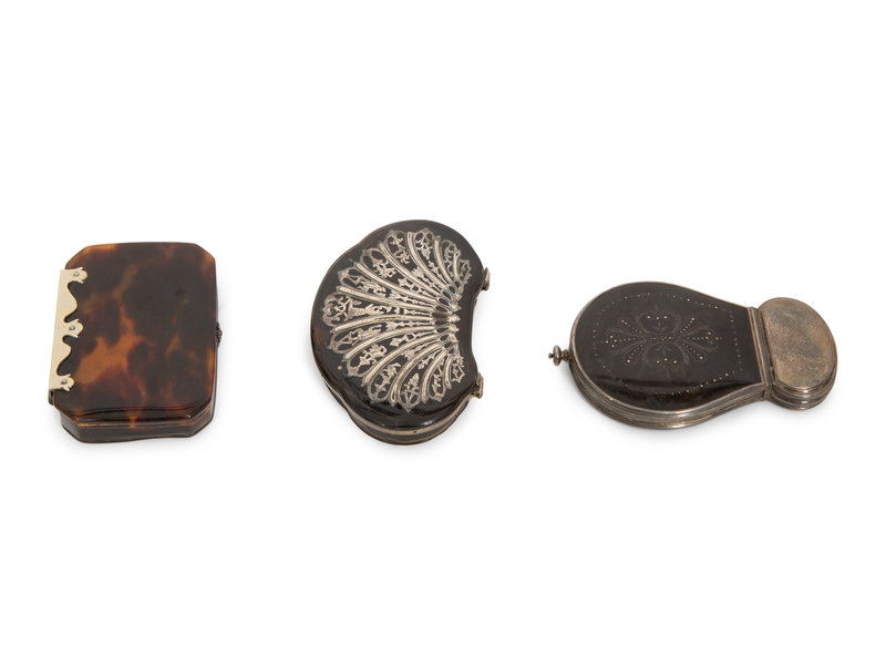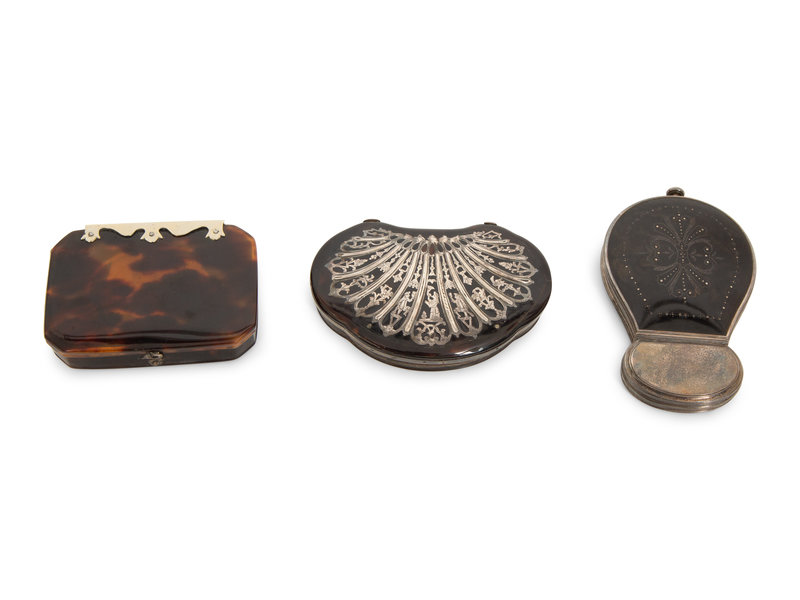 A Silver-Inlaid Tortoise Shell Snuff Box and Two Others
