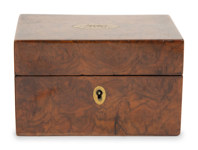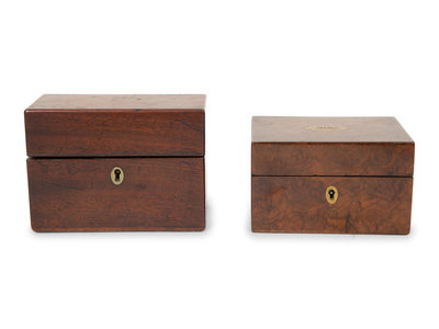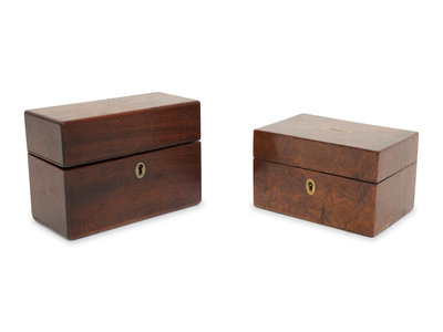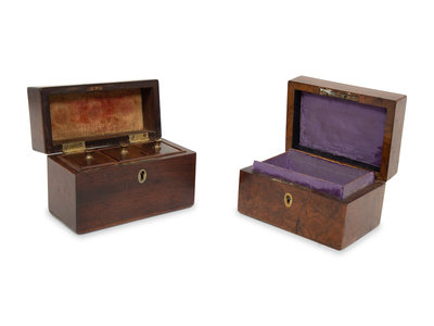 A Georgian Burlwood Jewel Box and a Mahogany Tea Caddy