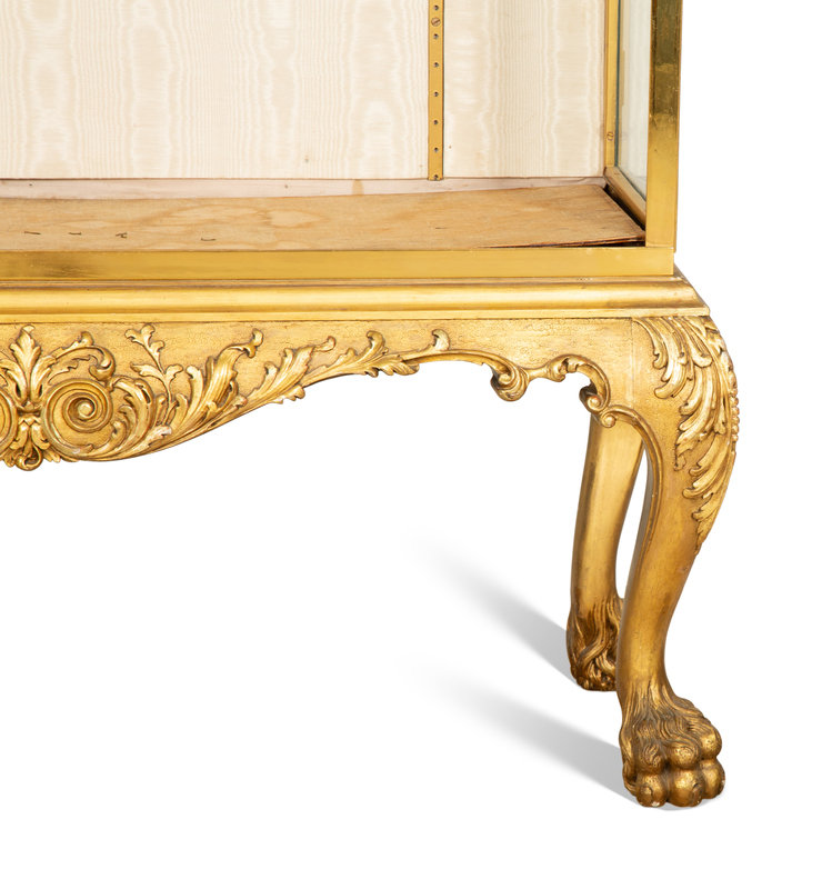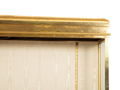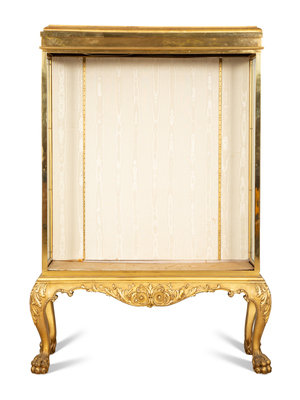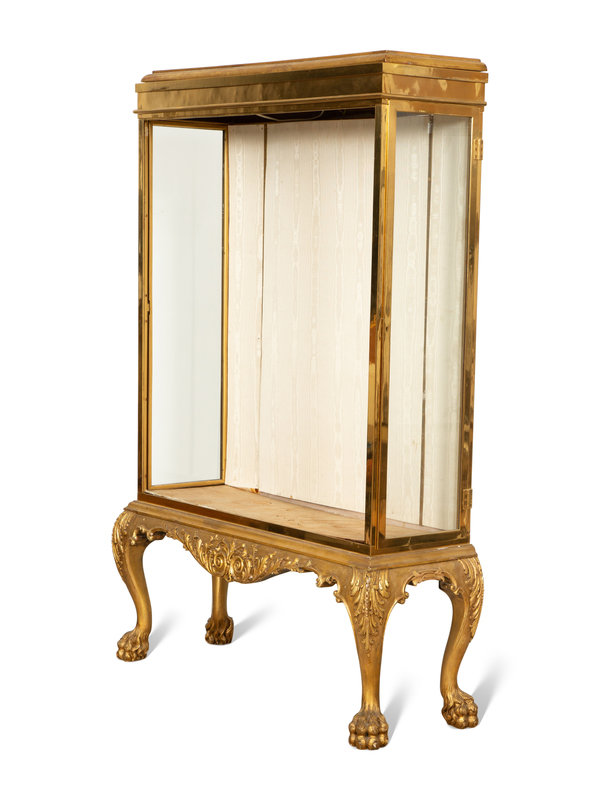 An English Brass Vitrine Cabinet on a Giltwood Base