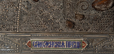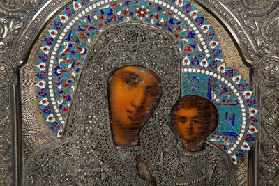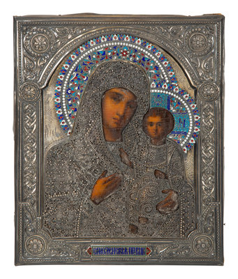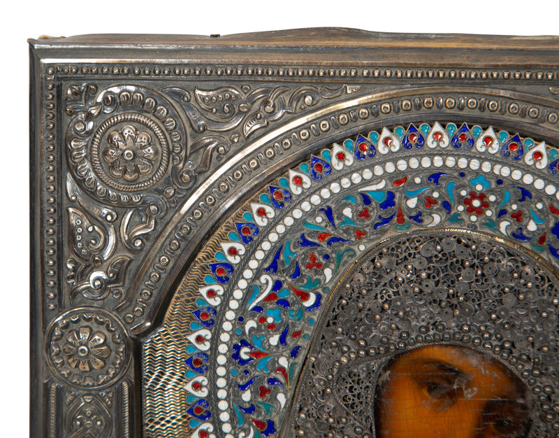 A Russian Silver and Enamel Oklad Icon
