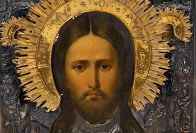 A Russian Parcel-Gilt Silver Oklad Icon