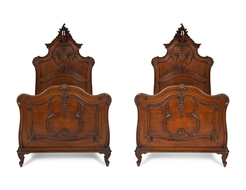 A Pair of American Victorian Carved Mahogany Twin Beds