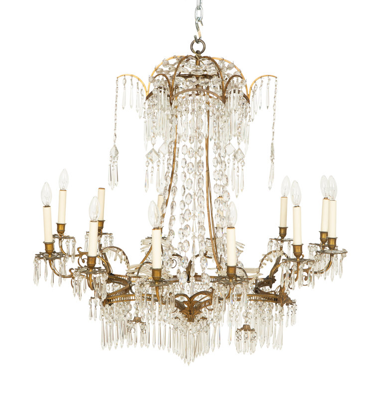 A Baltic Gilt Bronze and Cut Glass Chandelier