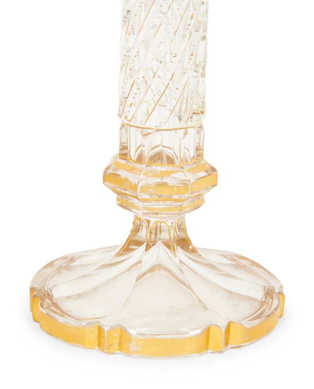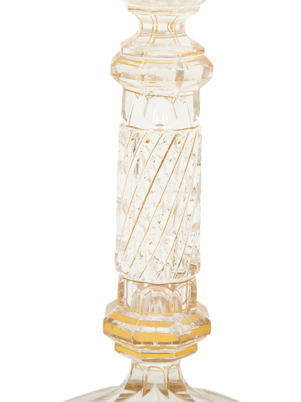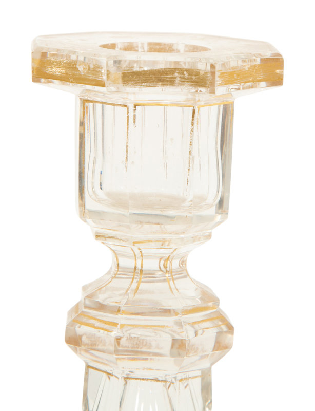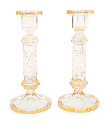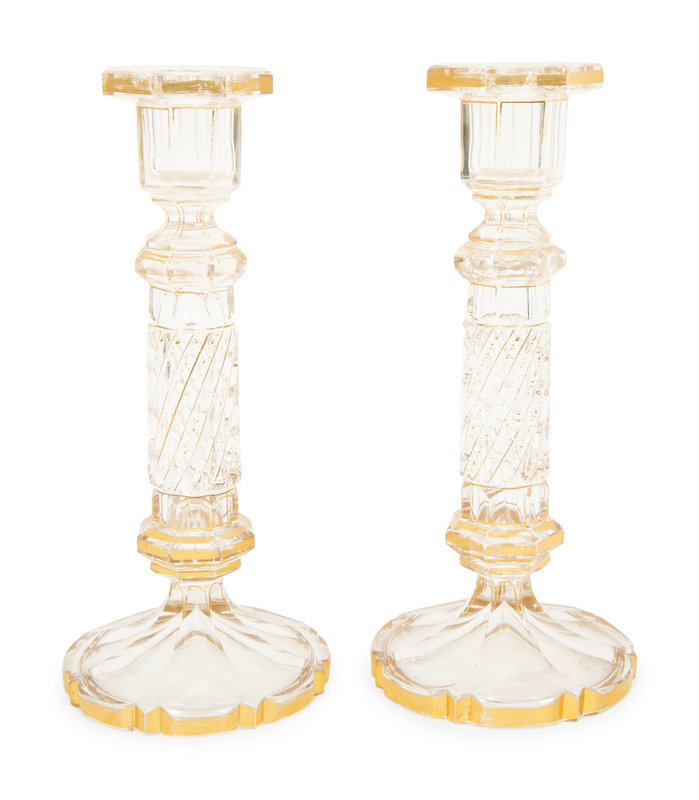 A Pair of French Gilt Decorated Cut Glass Candlesticks