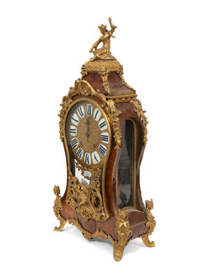 A Louis XV Gilt Bronze Mounted Kingwood Bracket Clock with Matching Wall Bracket