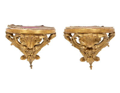 A Pair of Louis XV Style Giltwood Wall Brackets