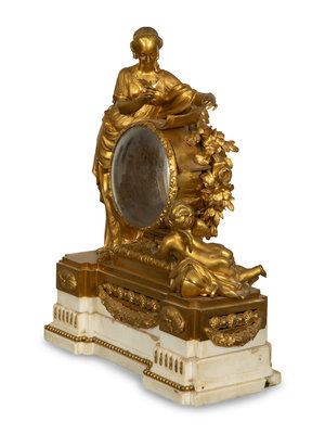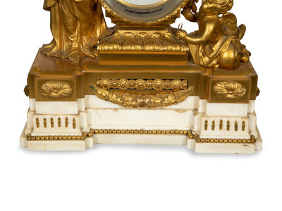 A Louis XVI Gilt Bronze Mounted Marble Mantel Clock