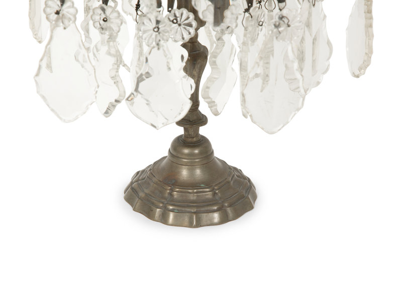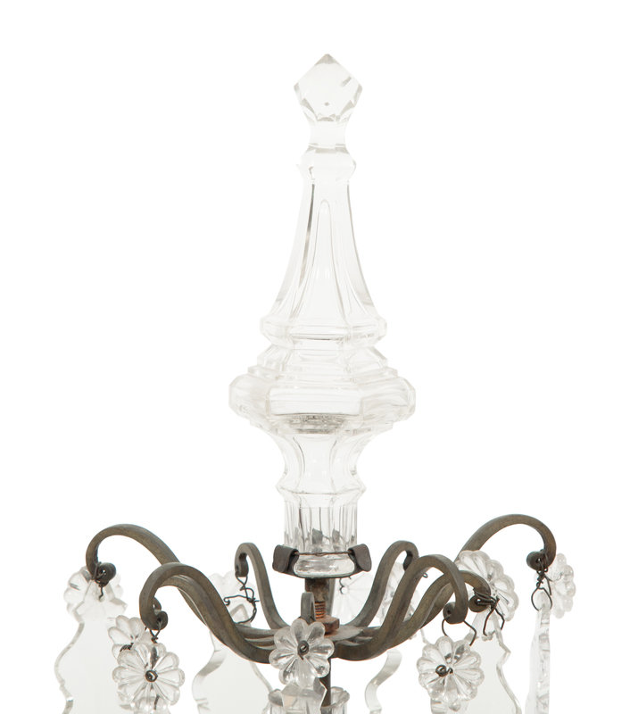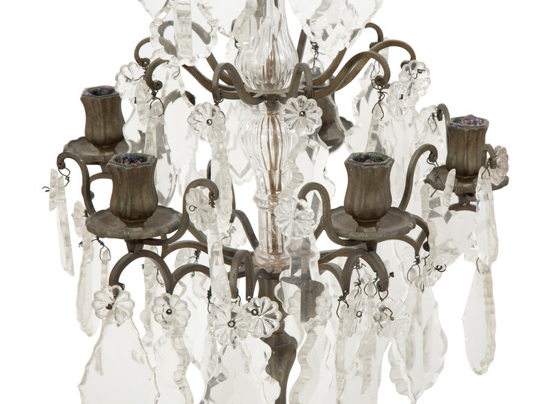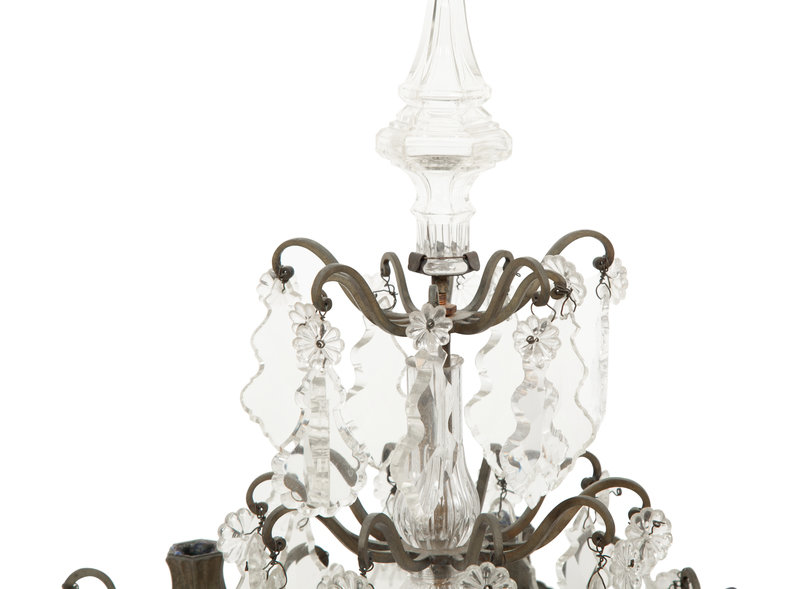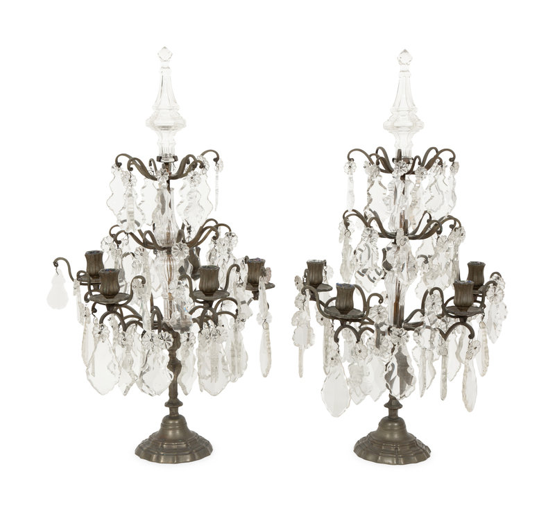 A Pair of French Bronze and Glass Five-Light Girandoles