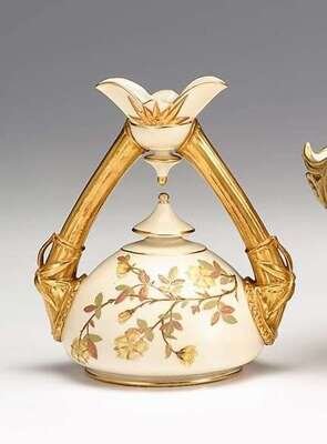 Royal Worcester porcelain double ewer late 19th century