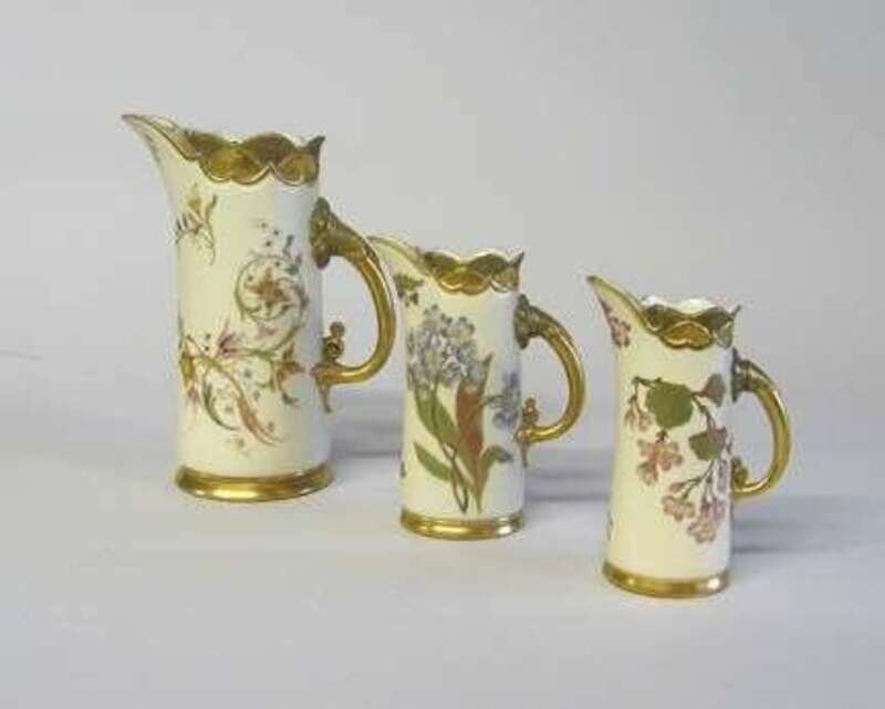 Assembled set of three Royal Worcester graduated porcelain pitchers late 19th century