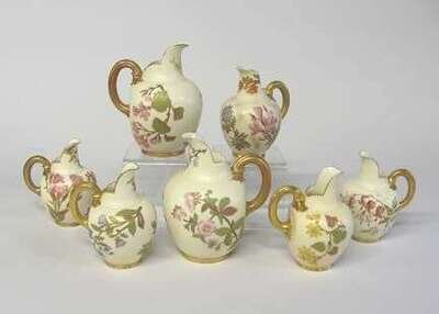 Seven small Royal Worcester porcelain pitchers late 19th century