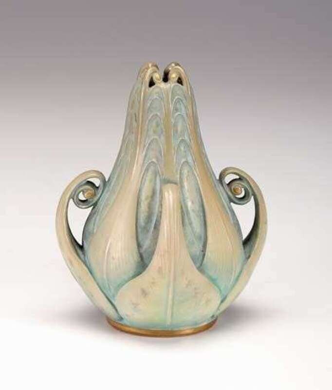 With blue/green mottled glaze with gilt enhancements, with impressed number 103 / 2. .
