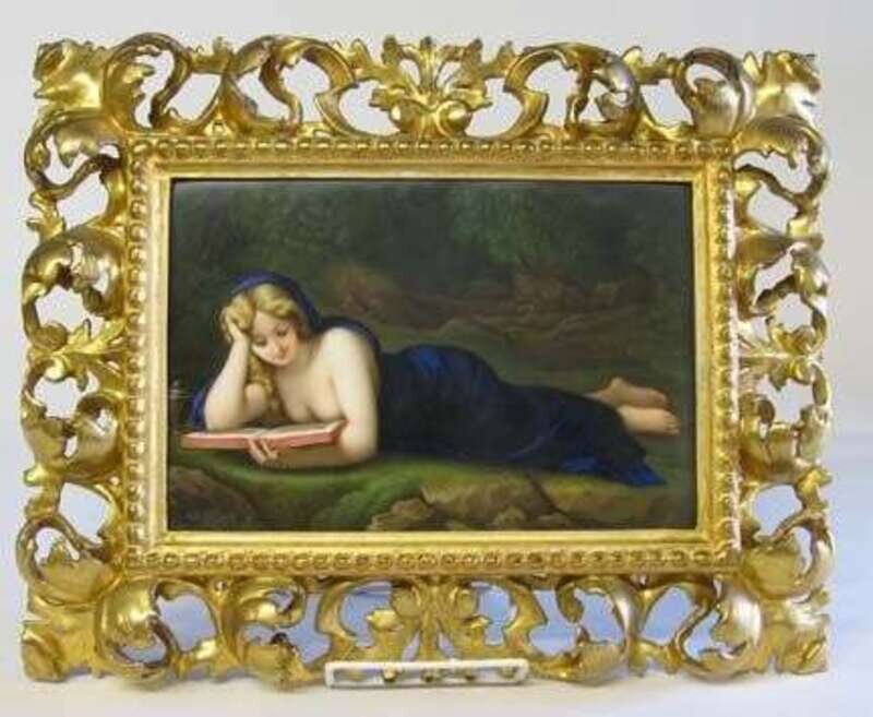 Painted after Bottini, depicting 'Penitent Magdalene', in an ornate carved giltwood frame.