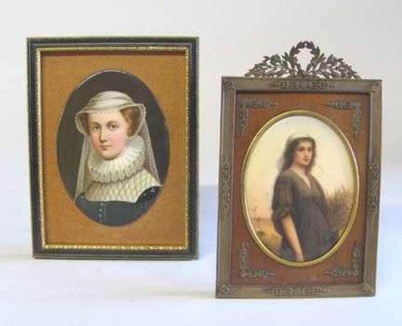 Depicting 'Ruth'; together with another oval porcelain plaque, painted with a bust length portrait of a young maiden in Renaissance costume.