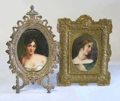 Painted with a bust length portrait of 'Madame Recamier'; together with a Berlin oval porcelain plaque, painted with a bust length portrait of a young beauty. (2).