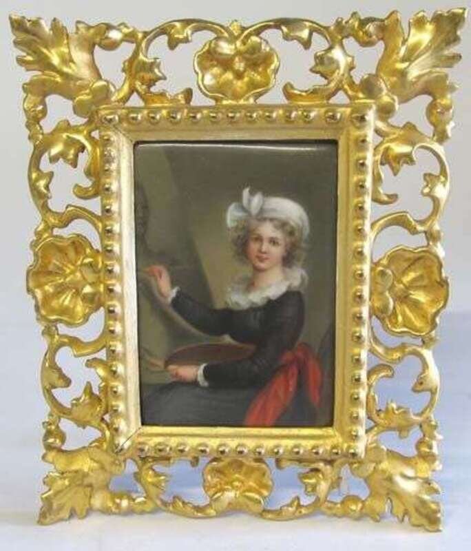 After the self-portrait by Elisabeth Louise Vigee Le Brun (French 1755-1842), with 'Michele Fiorini & Figlio, Firenze' backstamp, in a giltwood frame.