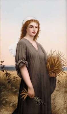 Depicting 'Ruth', after Landelle, impressed KPM and sceptre mark, framed.