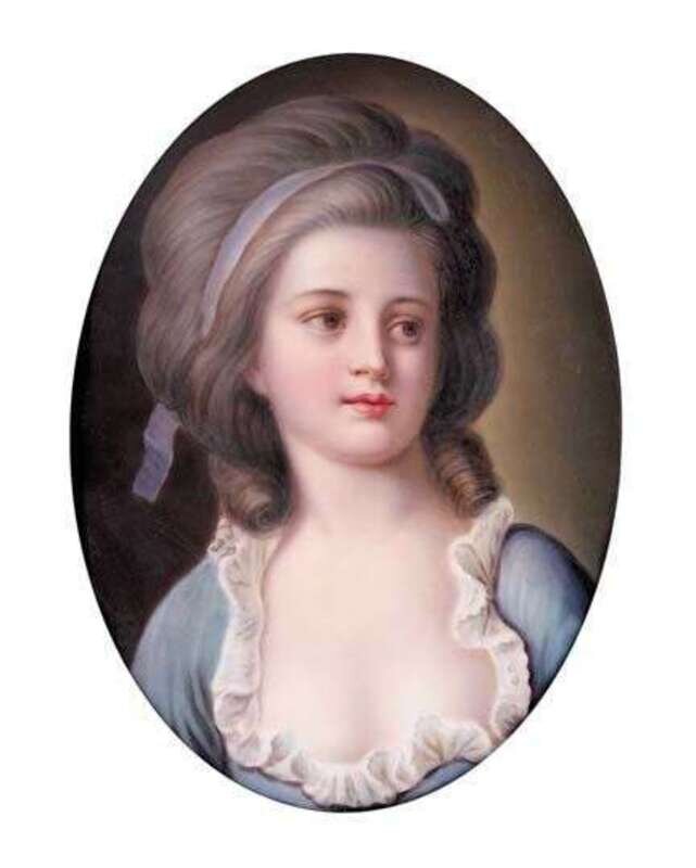 Painted with a bust length portrait of "Countess Potocka' after LeBrun, framed.