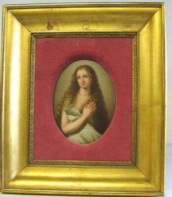 Painted with a portrait of Mary Magdalene, framed.