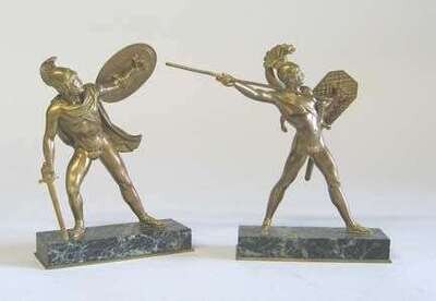 Modeled as Greek warriors, raised on green marble bases.