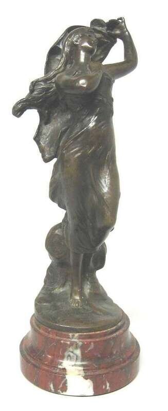 Bronze, medium brown patina, signed Virgile Morez, raised on a circular rouge marble base.