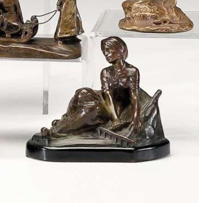 Bronze, medium brown patina, signed P. Tereszczuk, on an ebonised wood base. .