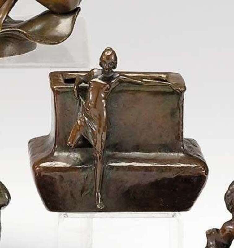 The square ovoid vessel applied with a scantily clad beauty, signed Marschall, Depose. .