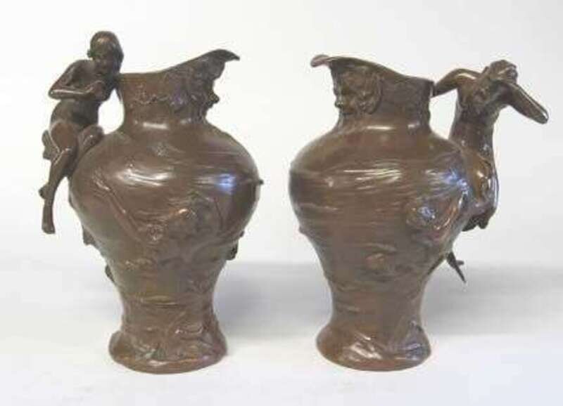 After models by Alexandre Clerget (French b. 1856), chocolate brown patina. (2). .