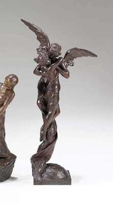 Bronze, dark brown patina, signed E. Villanis, with Societe des Bronze de Paris foundry seal, stamped E 1037.