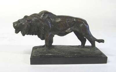Bronze, base inscribed Columbia Lion with copyright symbol, signed FGR Roth, raised on a black marble plinth.