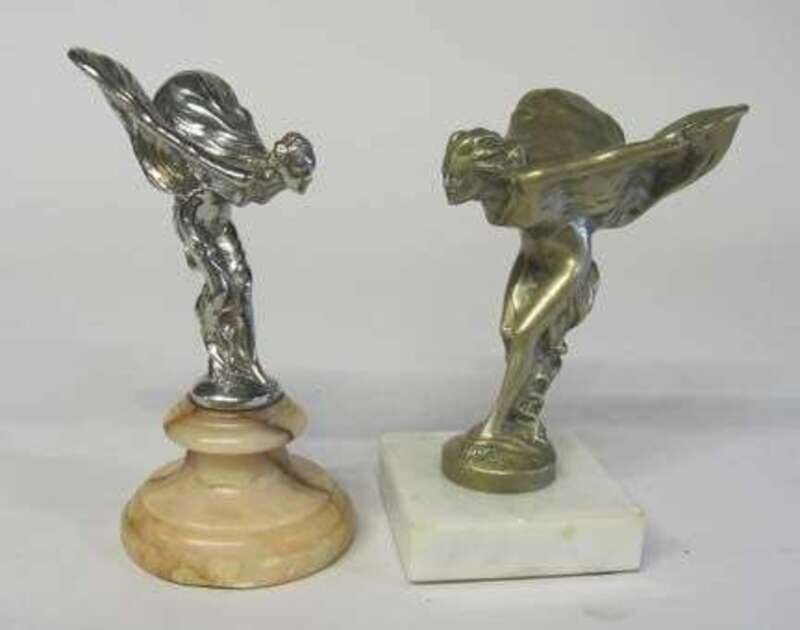 Two examples, each mounted on a marble base, the larger example signed ROLLS-ROYCE. (2). Literature: The Fine Art Society, British Sculpture 1850-1914 London, 1968, number 161. This sculpture has been used since 1911 on a reduced scale as the mascot for Rolls-Royce motorcars.