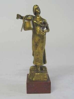 Gilt bronze, signed A. Moncel, with F. Barbedienne foundry mark, on a square rouge marble base.