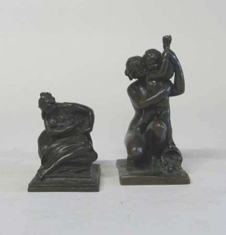 Bronze, dark brown patina, signed Emily Spachman and inscribed Roman Bronze Works, NY.; together with a smaller bronze group modeled as a mother cradling her child, inscribed 'RBW' to underside. (2). .
