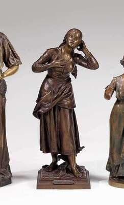 Bronze, gold brown patina, signed H. Dumaige, with 'B.D. Paris' foundry seal.