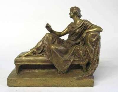 Gilt bronze, depicting a woman reclining on a chaise, with C. Valsuani foundry seal.